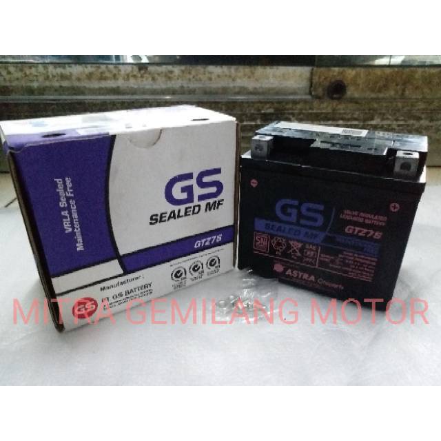 Aki Motor Satria Fu Vario 125 150 CB150R GTZ7S GS Accu KeringRp190000. GS Astra GTZ-6V New with VRLA Sealed Aki Kering Motor Rp. Telah berstandarisasi SNI jadi aman karena sudah teruji.